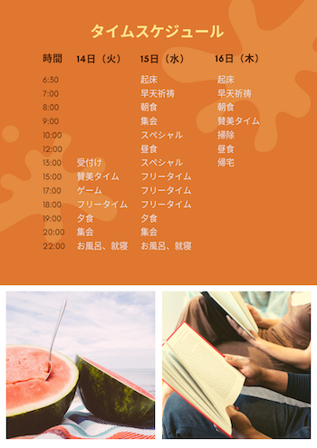 | 6:30 | 起床、早朝祈祷会 |