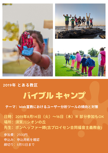 今年のバイブルキャンプは、スペシャルゲストをお呼びしています! 申し込みは、別紙を参照ください。 サポートメモ上のデモサイト用チラシは、Canva を使って10分で作りました。Canva を使えば早くて […] -