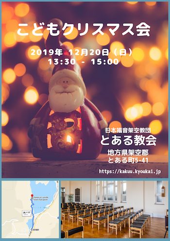 こどもクリスマス会を開催します。 どなたもご参加いただけます。ぜひお越しください! 日付2019年12月20日(日)時間13:30~15:00場所とある教会とある町丘の上1-2-3費用無料備考 サポートメモ上のデモサ […] -